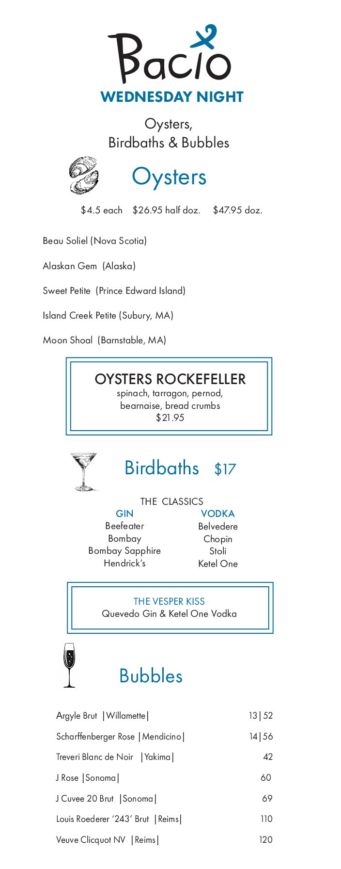 Join us for Oysters Birdbaths Bubbles Every Wednesday starting at [...] |